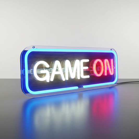 Le Néon Mural Game On est une lampe gaming murale qui pose immédiatement le décor : ici, on joue. La lumière néon colorée crée un fond parfait pour les photos, les vidéos TikTok, les streams ou tout simplement pour donner du caractère à la pièce.