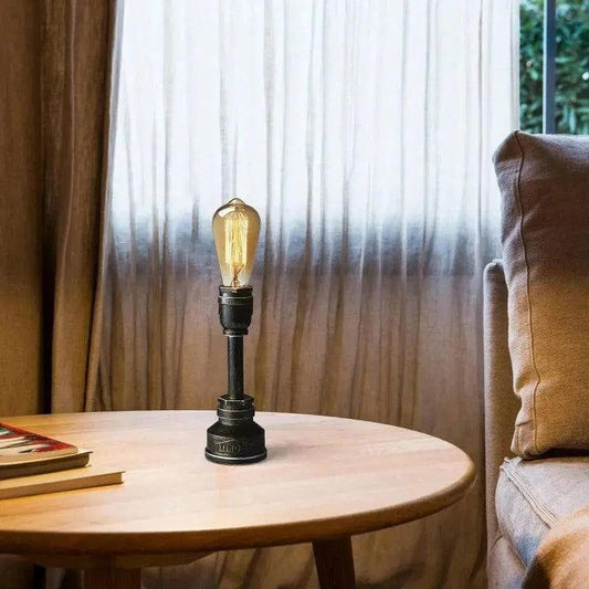 Utilisez une lampe de chevet industrielle ou une lampe à poser industrielle bois avec ampoule vintage 2700K pour un rendu doux.