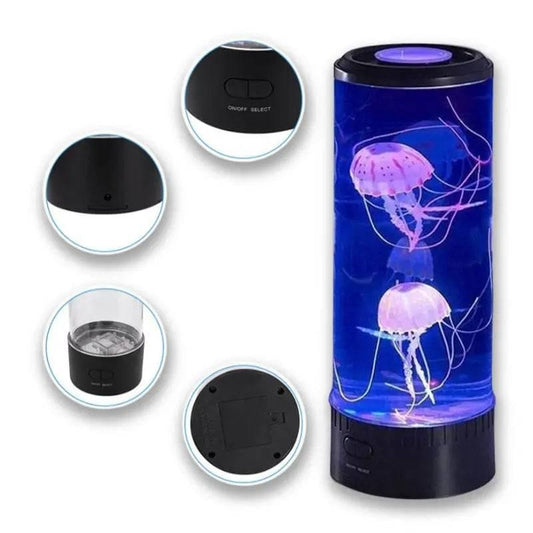 C’est un dispositif lumineux décoratif qui imite le mouvement de vraies méduses grâce à un moteur interne générant un courant d’eau. Les méduses sont en silicone et illuminées par LED RGB.