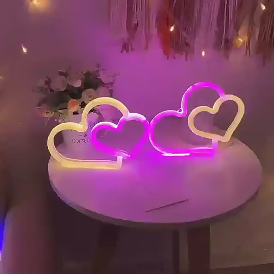 Néon à Led Forme Double Coeur | Une Touche Romantique pour Votre Intérieur