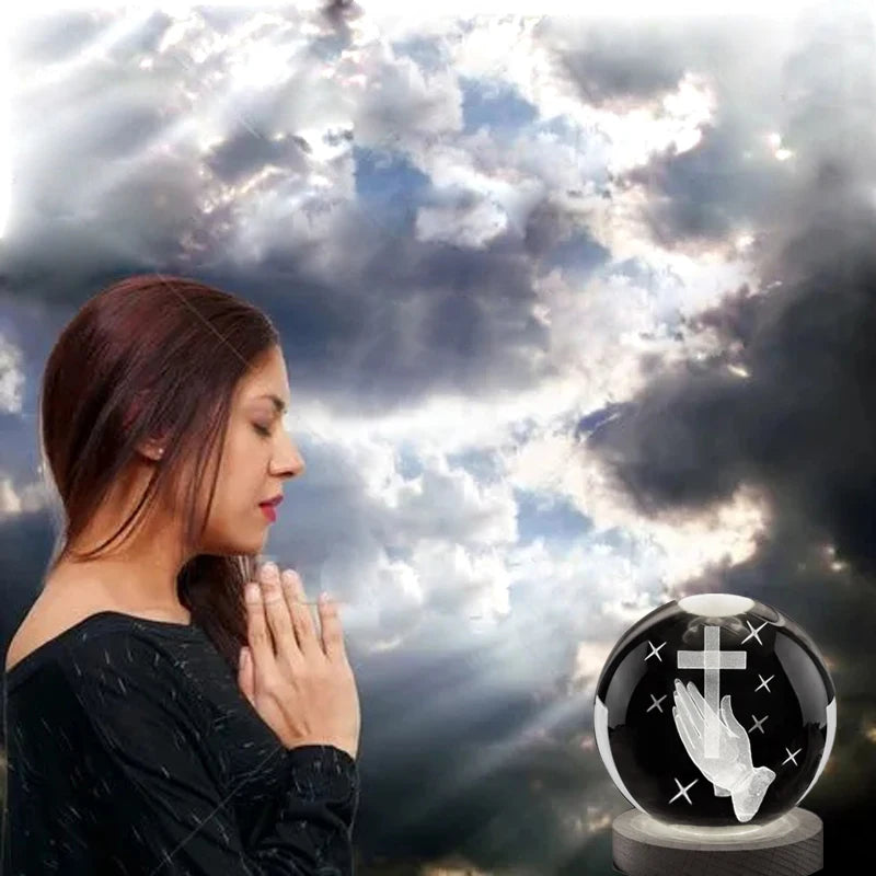 Veilleuse Boule Cristal 3D Prière – Lumière Spirituelle et Sérénité